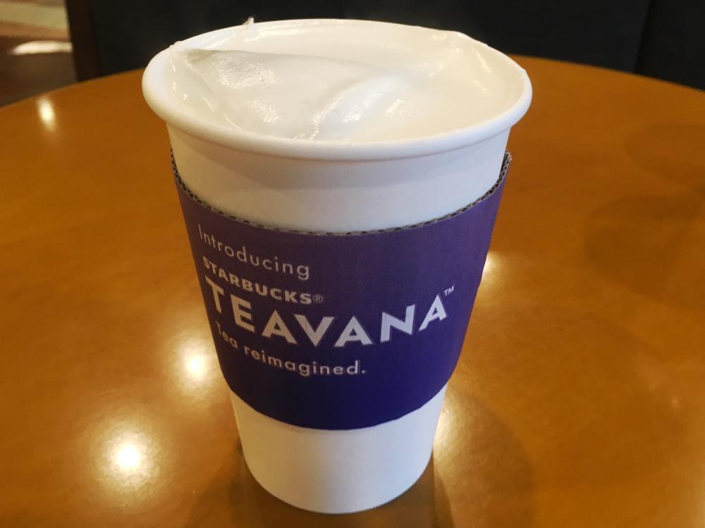 以前のラインナップにはなかった「カモミールティーラテ」(トールサイズは420円)を飲んでみました。ひと口目の印象は、カモミールの良い香りと少しスッとするミントの風味にミルクの甘みが加わっています。過去に販売されていた「スペアミントグリーンティー」をマイルドにしたような味わいにも感じられました。ノンカフェインなので、カフェインを摂りたくないときでも楽しめます。