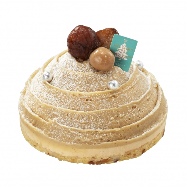 「モンブラン・オ・マロン」(4号、3780円)はクリスマスのためのリッチな味わいのモンブラン。ブロンドチョコレートを使ったチョコレートムースに、刻んだ栗を入れたマロンムース、生クリームを重ね、しっとりとしたマロンクリームで仕上げました。アクセントのくるみとキャラメルが、栗の味わいをより引き立てます。