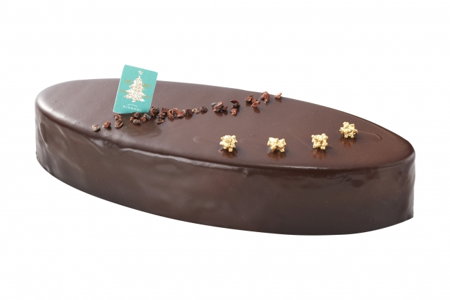 「ショコラショコラ」(4.5号、3996円)はクリスマスらしい、華やかでリッチなチョコレートケーキ。イタリア・ドモーリ社のショコラを贅沢に使用したショコラの生地とムースを6層重ね、アクセントに薄いタブレットとショコラクッキーを合わせたショコラづくしのケーキです。ゴールドの金平糖、カカオニブの飾りが大人っぽい!