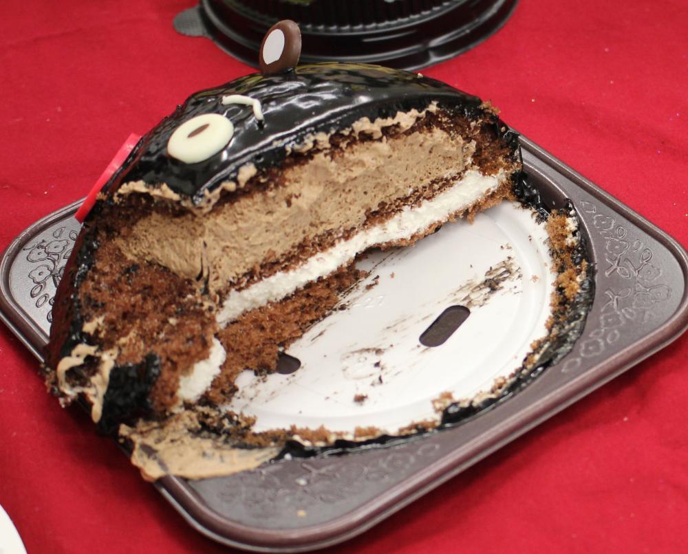 鼻が邪魔してうまく切れませんでしたが、中はホイップカスタードとチョコクリームがたっぷり。スポンジもふわふわ&クリームも軽い甘さで意外に?大人にもぴったりです。気になるまわりの竹炭チョコですが、ねっとりしていてコクがあり、軽いスポンジにもよく合っていました。