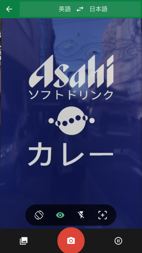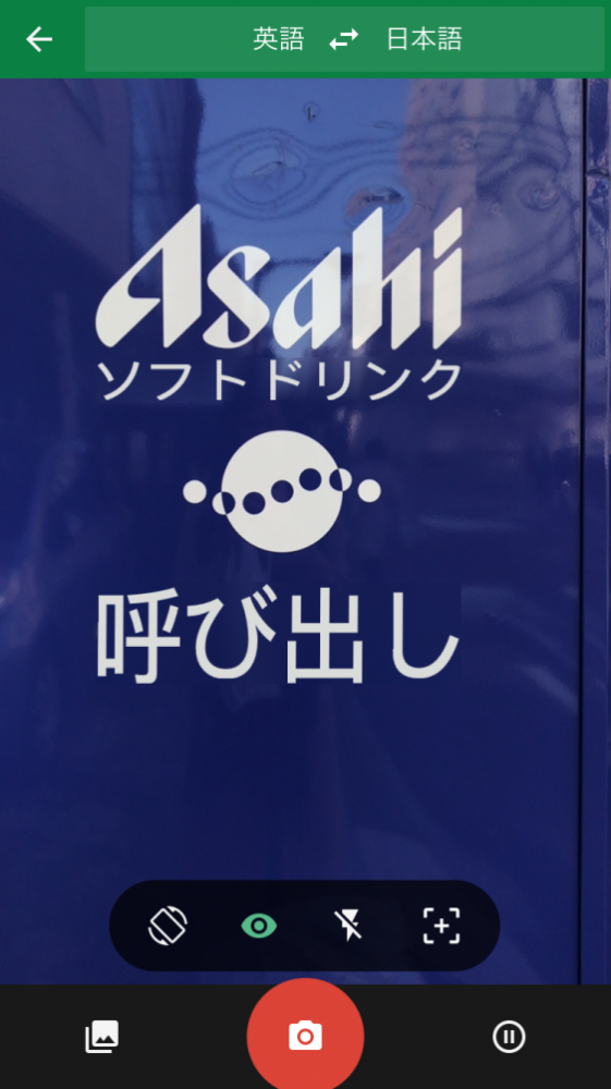 まずは自動販売機を翻訳。「SOFT DRINKS」「CALPIS」などの英字がありますが、撮影してみると......、