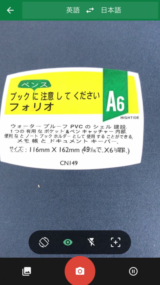 「NOTE BOOK FOLIO(ノートブックフォリオ)」は、「ブックに注意してくださいフォリオ」になってしまいました。NOTEとBOOKが離れていたためか、NOTEを「注意する」と訳してしまったよう。「PENCO」というブランド名は「ペンス」なってしまいました。
