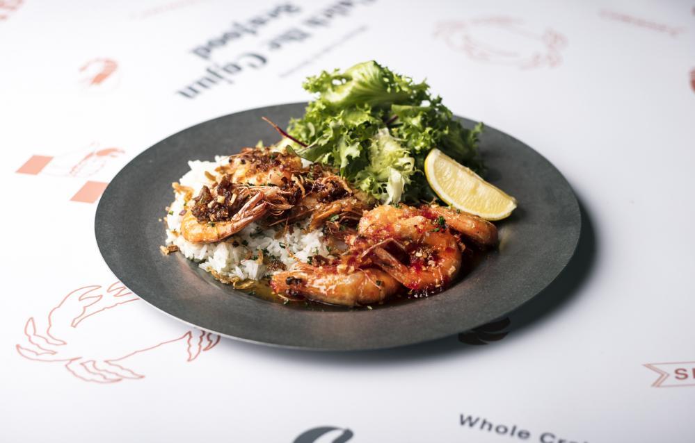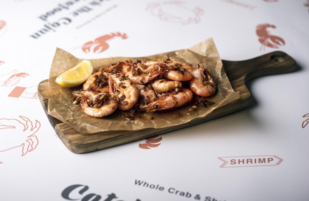 ソースはアメリカ・ルイジアナの伝統ソースをガーリックバターでアレンジした「オリジナルケイジャンソース」のほか、黒ゴマベースの「ペッパーソース」、「レモンガーリックソース」の3種から選択可能。プリプリとした身にたっぷりつけて召し上がれ。