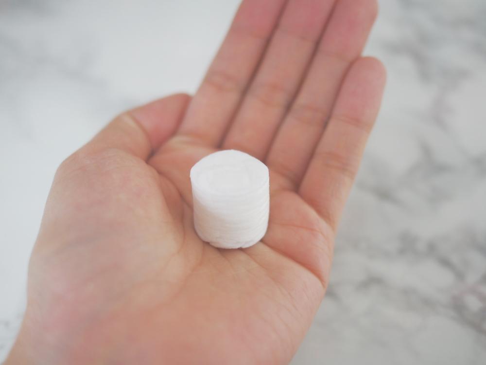 話題の「圧縮フェイスマスク」は個別に袋に入っており、袋から商品を出して化粧水に浸すと、展開されてフェイスマスクに変身します。耳、鼻、口の部分が開いているので、そのまま顔に貼るだけでOK!