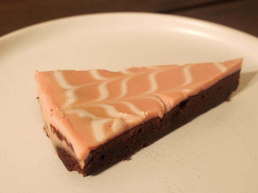 数あるスイーツの中でもピンクと白の色合いが美しく、目を引く一品。スイーツ棚で誘惑してきます。なおかつ"イチゴ"と王道スイーツ"ガトーショコラ"が合わさったということで、スイーツ好きな女性たちの間で発売早々話題に。SNS上では、