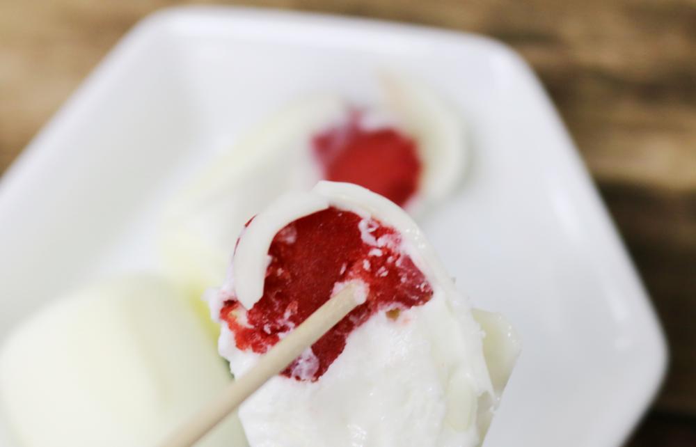 アイスはホワイトチョコでコーティングされており、その中に濃厚な練乳アイスとジューシーな苺がまるごと1つ入っています。パリパリとしたチョコを噛み砕くと、甘く濃厚な練乳の味わいと苺の甘酸っぱさが口の中で混ざり合い、絶妙な美味しさを生み出します。少し溶けて柔らかくなった状態で食べると、練乳の甘さがより強く感じられました。