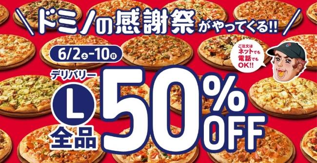 宅配ピザチェーン「ドミノ・ピザ」各店では2018年6月2日から10日まで、お得なデリバリーキャンペーン「感謝祭」が開催されます。