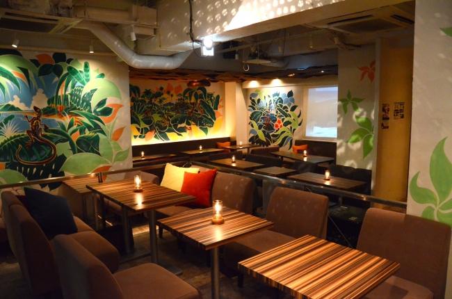 同店は、"ハワイの雰囲気をdaily useで楽しめる"をコンセプトにしたハワイアンカフェ。ハワイの自然をイメージしたカラフルなハイビスカスや緑などのイラスト、ゆったり過ごしやすいソファ席の豊富さが特徴です。