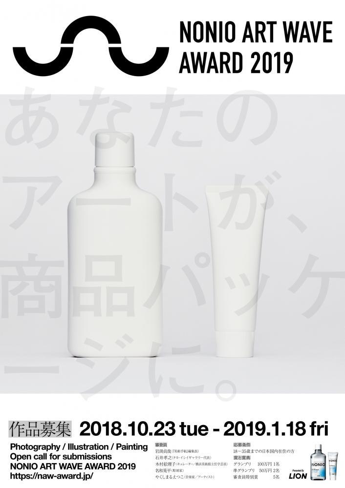受賞作品は2019年秋に数量限定で発売される「NONIO ART PACKAGES」のパッケージデザインに採用されるほか、受賞者には賞金(活動支援金)の贈呈、審査員からの講評、作品を展示・販売・発表する機会が提供されます。