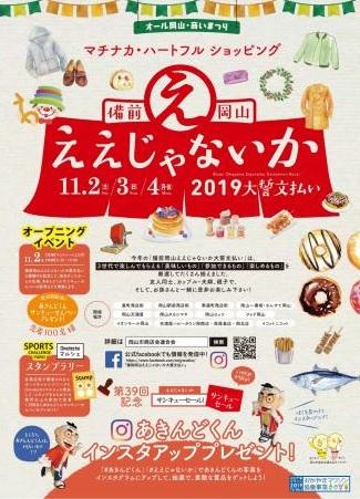 2019年11月2日から4日、表町・岡山駅前・奉還町商店街ほか、岡山市商店会連合会加盟商業施設にて「備前岡山ええじゃないか2019大誓文払い」が開催されます。