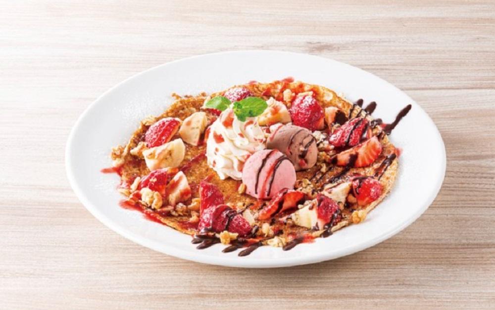 イチゴとチョコの王道コンビの美味しさは間違いなし! デニーズによると、しっとりとした食感のガレットなので、イチゴやアイス、クリームをくるりと巻いて食べるのがおすすめとのことです。