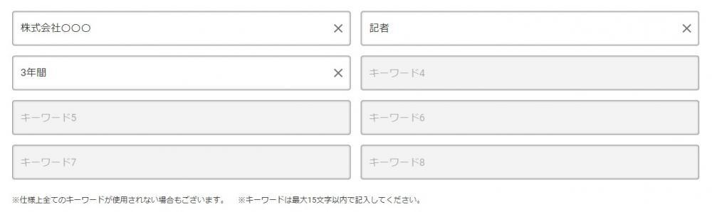 入れたキーワードは「株式会社〇〇〇」「記者」「3年間」。