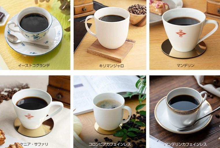 珈琲豆は、7種類の中から好きなものを2種選べます。モカ、クイーンはどちらか1種類だけ選択可能です。