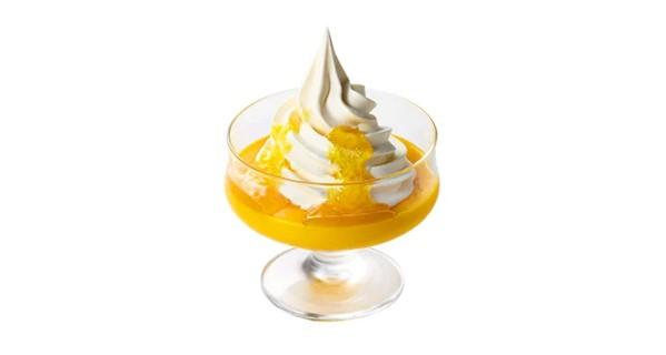 見た目にも鮮やかな「ココナッツ・マンゴープリン~パイナップルソース~」。マンゴーの王様と呼ばれるインド産アルフォンソマンゴーを使用。ふわっと香るココナッツと、爽やかなパイナップルソース&ソフトクリームはまさに南国気分。価格は単品で税込420円、セットは税込660円です。