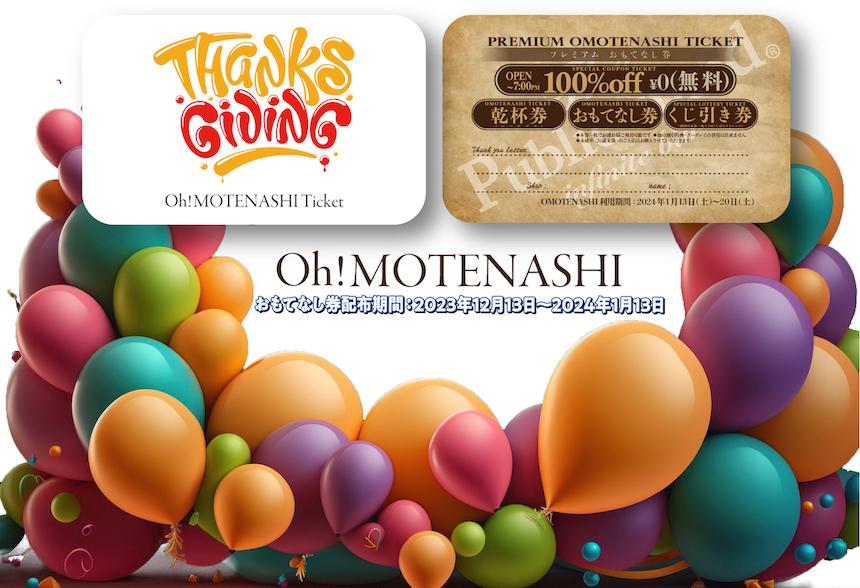 「おもてなし企画」では、2023年12月13日から総計1万枚の「おもてなしカード」を配布しました。キャンペーン期間中に「おもてなしカード」を持参すると、担当スタッフとの乾杯や遊びコンテンツを一緒に楽しめるなど、さまざまな「おもてなし」を用意しています。