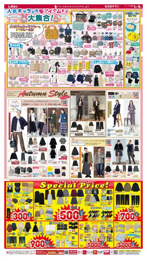 ファッションセンターしまむらが毎週発行しているチラシより、2025年10月1日から5日まで買えるお得な商品を紹介します。