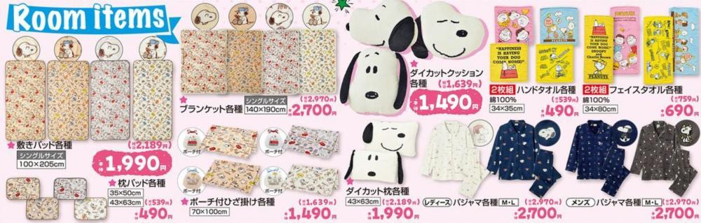 「ブランケット各種」(2970円)や「ポーチ付きひざ掛け各種」(1639円)、「ダイカットクッション各種」(1639円)といった、癒しのおうち時間を過ごせるアイテムの数々も並んでおり、本格的な秋を迎える前にチェックしておきたいところ。