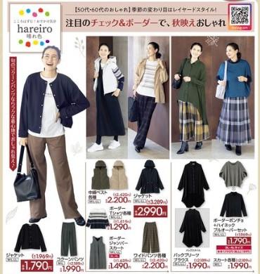 雑誌「大人のおしゃれ手帖」と「素敵なあの人」がプロデュースする「hareiro」は、レイヤードスタイルを楽しめる洋服がズラリ。ファーやゴールドファスナーがさり気ないアクセントの「中綿ベスト各種」(2420円)に、揺れるような背中のプリーツがエレガントな「バックプリーツブラウス」(2189円)など......。