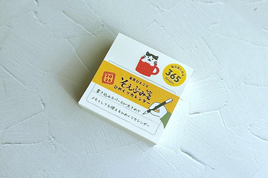 「ひめくりカレンダー そえぶみ箋」は、ちょっとした気持ちを添える手紙やメモとして使える古川紙工のベストセラー「そえぶみ箋」がモチーフ。