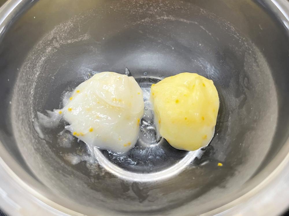 左が何も手を加えていないヘアマスク、右が手で混ぜたヘアマスク