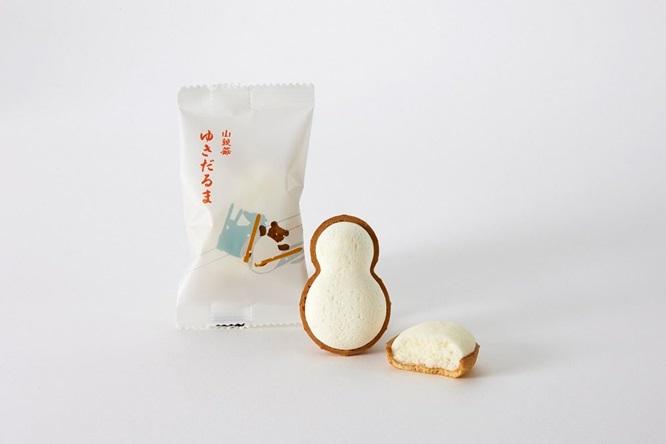 また、関東初登場の「山親爺ゆきだるま」は、札幌千秋庵の代表商品である、上質なバターとミルク、卵を使用した風味豊かな洋風煎餅「山親爺」をベースとした商品です。「山親爺」を使用したゆきだるま型の特製クッキーの上に、ふわふわのホワイトチョコレートをのせています。9個入りで、価格は1281円。
