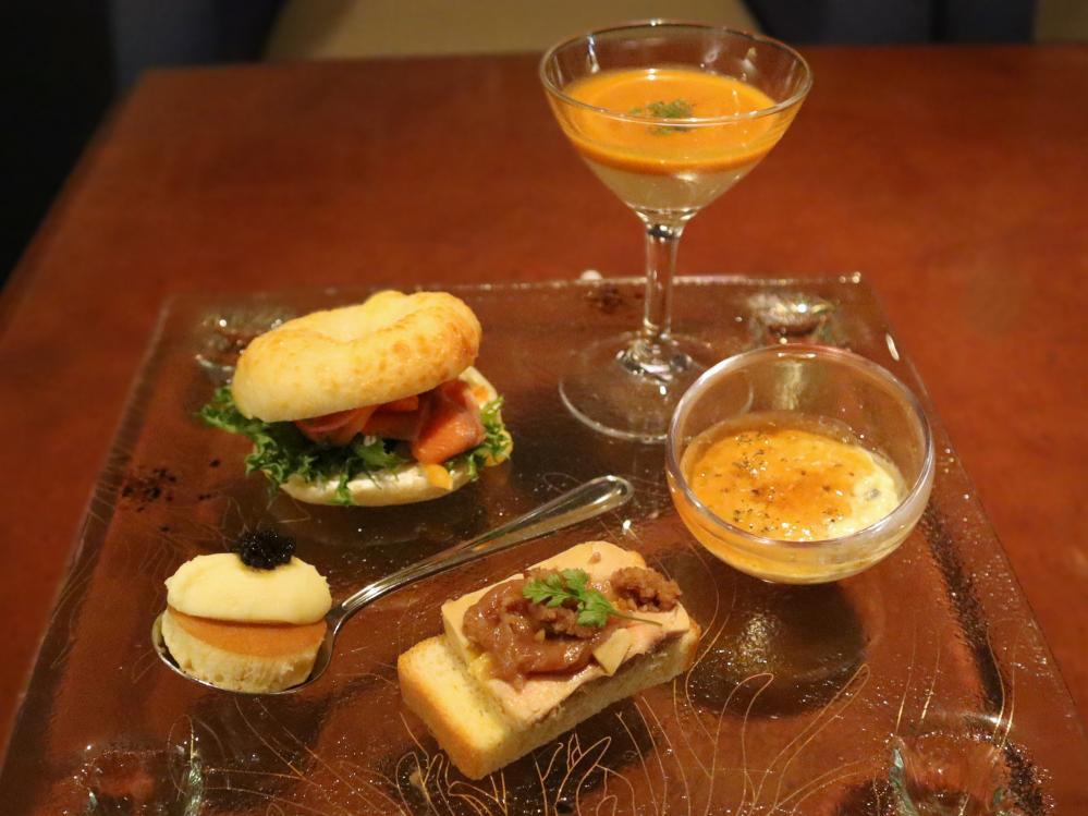 アフタヌーンティーに欠かせない"セイボリー"にも、こだわりがぎっしり。トリュフにキャビア、フォアグラといった世界三大珍味を贅沢に取り入れていて、食材の濃厚な旨みとお酒のマリアージュを楽しめます。
