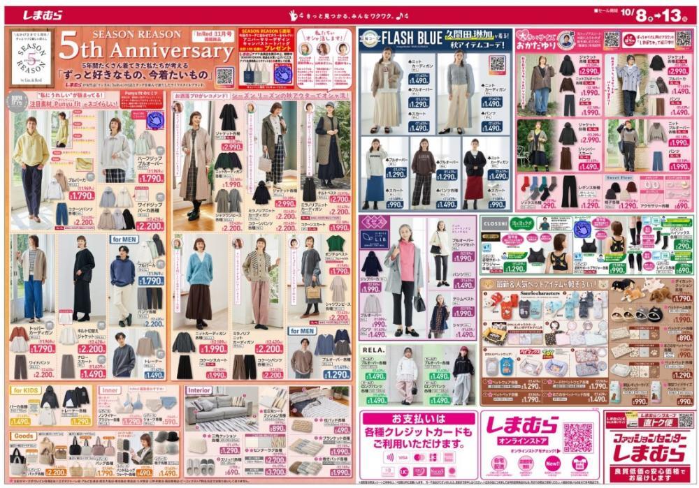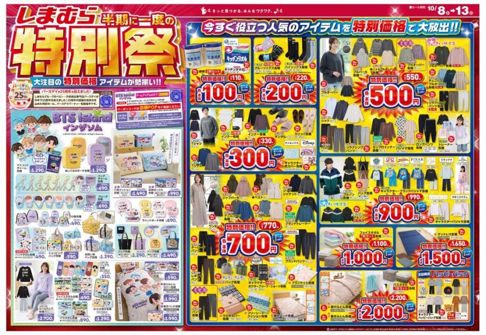 ファッションセンターしまむらが毎週発行しているチラシより、2025年10月8日から13日まで買えるお得な商品を紹介します。