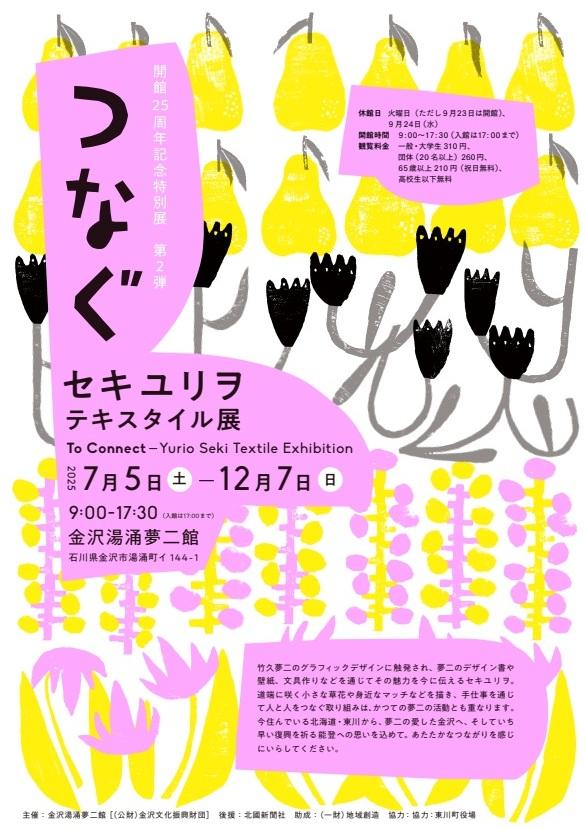 2025年7月5日から12月7日まで、金沢湯涌夢二館(金沢市湯涌町イ144-1)にて「開館25周年記念特別展第2弾 つなぐ セキユリヲ テキスタイル展」が開催されています。