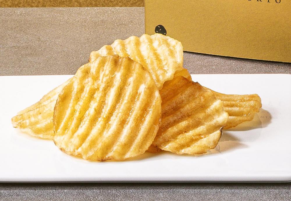 厚切りのポテトチップスに凝縮した"おいしさのしずく"をふきかけ、外はパリッと、中はサクサクの食感を実現しました。粉(K)が(G)手(T)に付きにくい「じっくり旨味がけKGT製法」を採用。味付けは和食の「広尾 小野木」が監修しています。