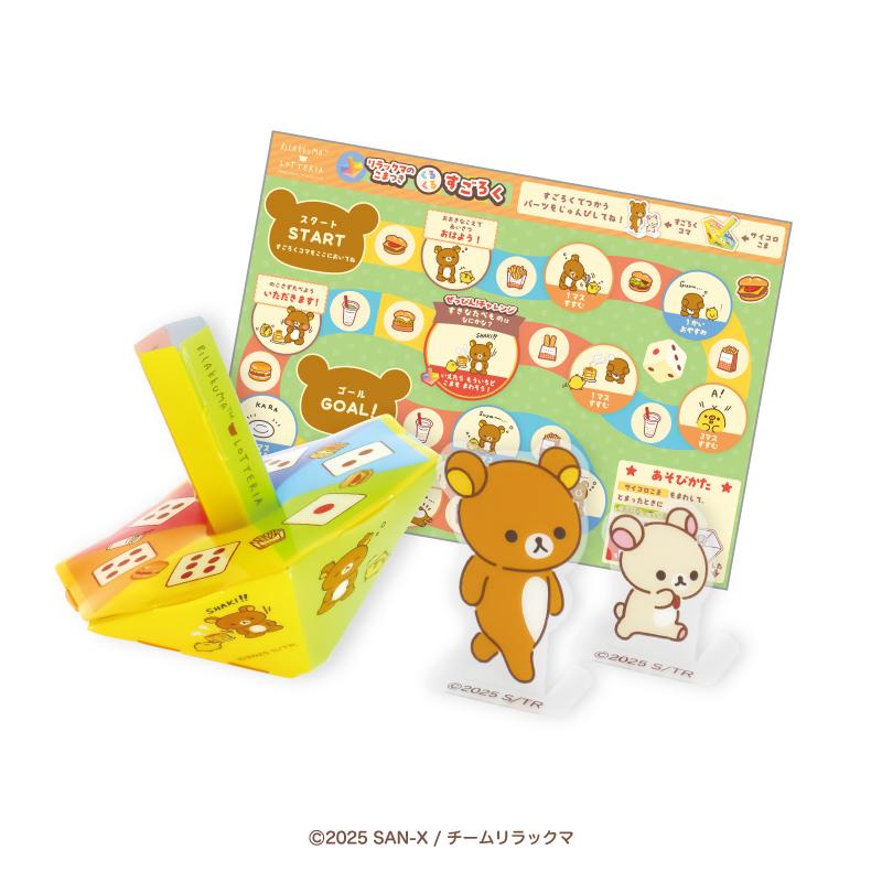 26年4月のアニメ化を記念し登場する「stay with me」シリーズのおもちゃ3種類から選択可能。リラックマが大好きな"ホットケーキのルーティーン"が描かれた、心温まるイラストが魅力的です。