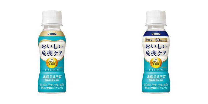 1つめの対象商品は、キリン「おいしい免疫ケア」と「おいしい免疫ケア カロリーオフ」(各100ml)。