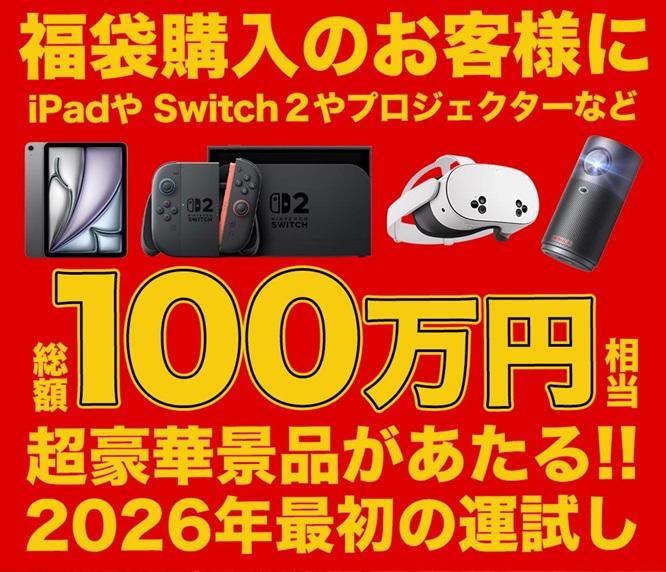 この福袋を購入した人の中から、抽選で100人に豪華景品が当たります。