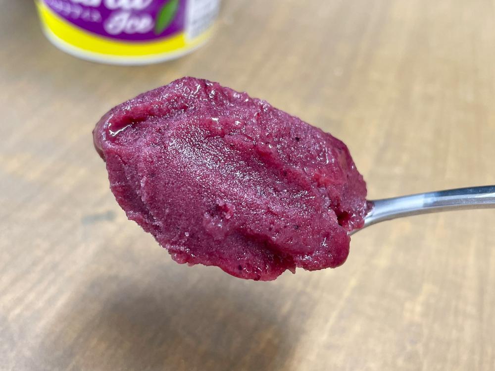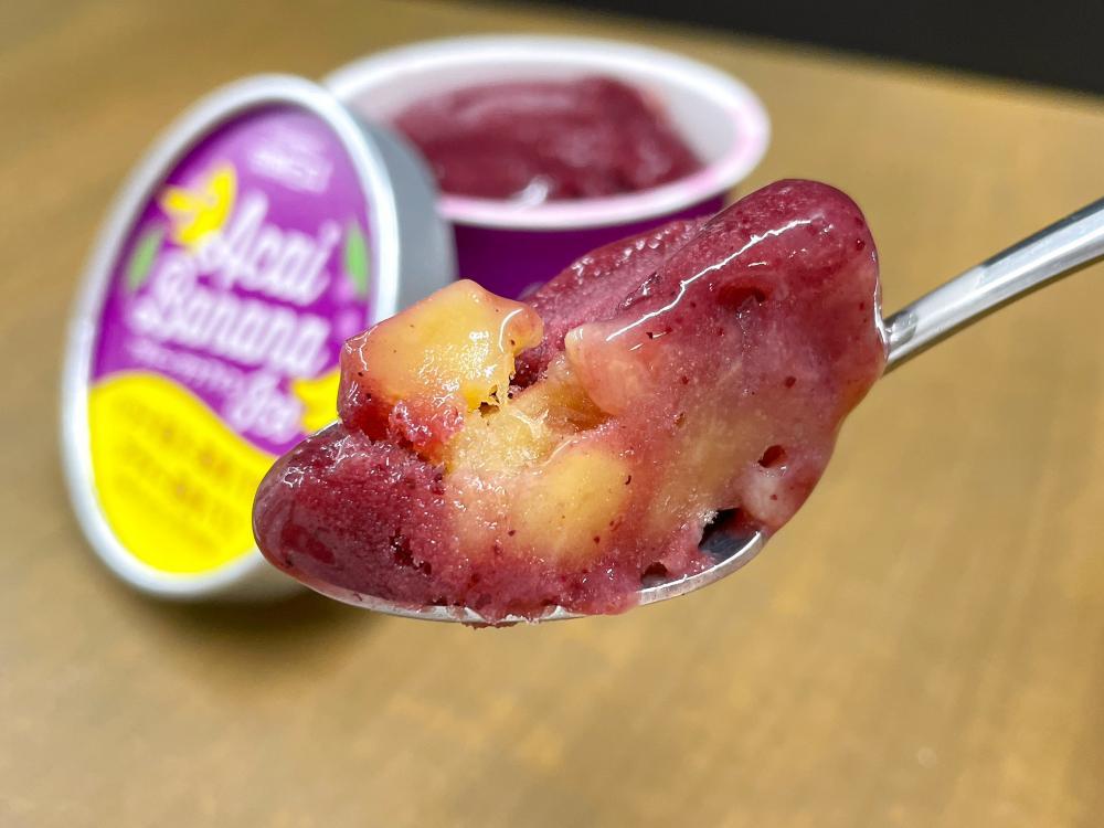 シャリシャリとシャーベットに近いものからジュースのようにサラサラとしたものまで、アサイーボウルといってもお店によって食感は様々。このアイスは、程よく弾力を感じる濃密さとみずみずしさを両立しており、まさに理想のアサイーボウルです。