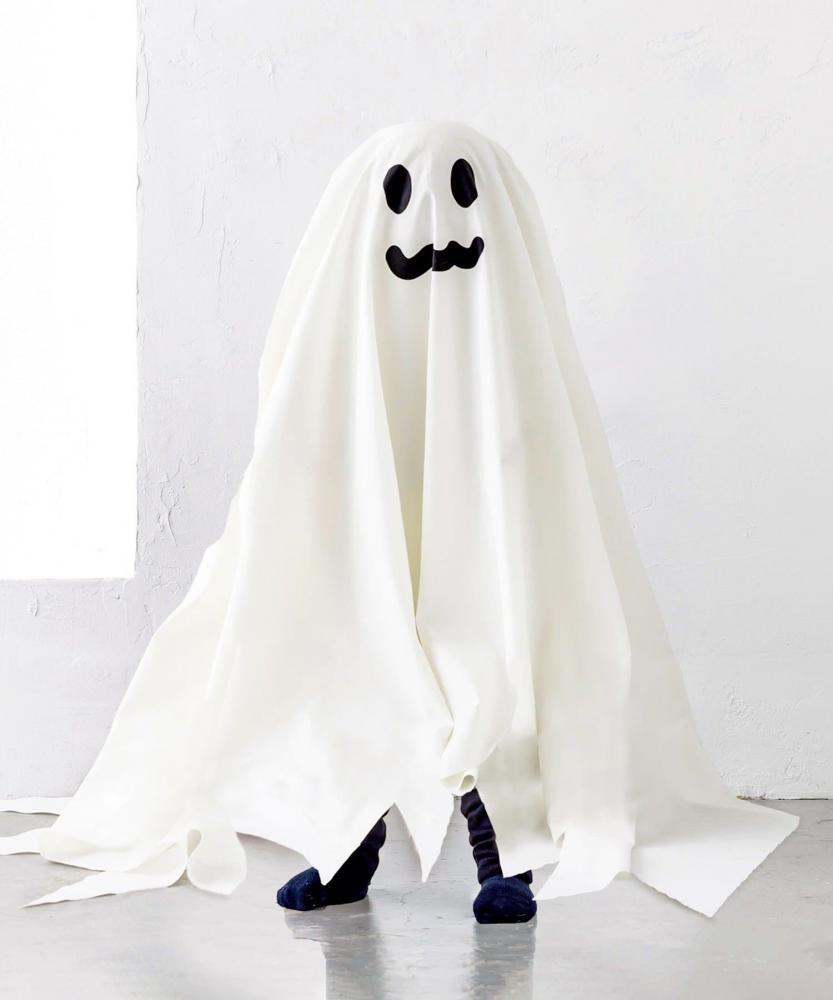 頭からふんわりと被るだけでお化けに変身できる、ユニークで愛おしいアイテム。