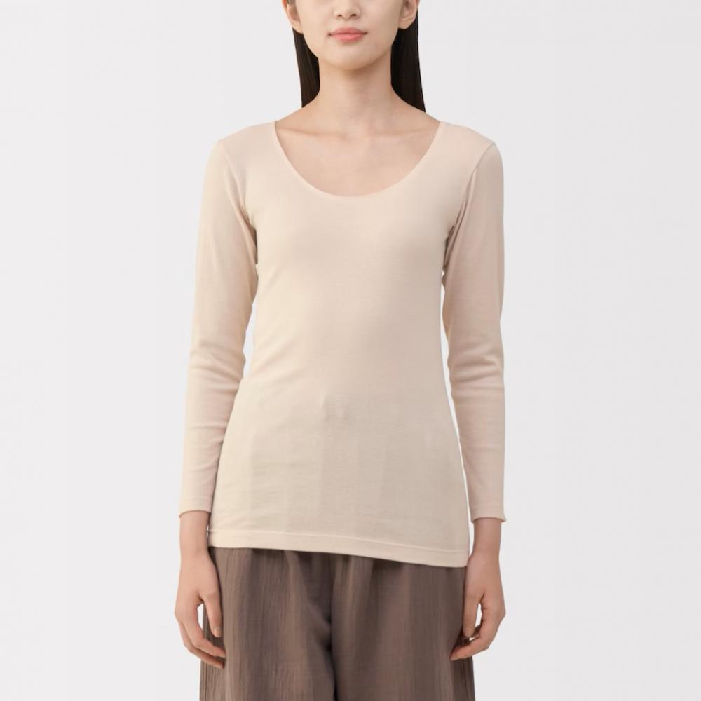 吸湿発熱性の機能を持つインナーは、本格的な冬に備えてゲットしておきたい一着。オーガニックコットン100%の生地は、肌の乾燥や静電気もおさえてくれてとにかく優秀なんです。