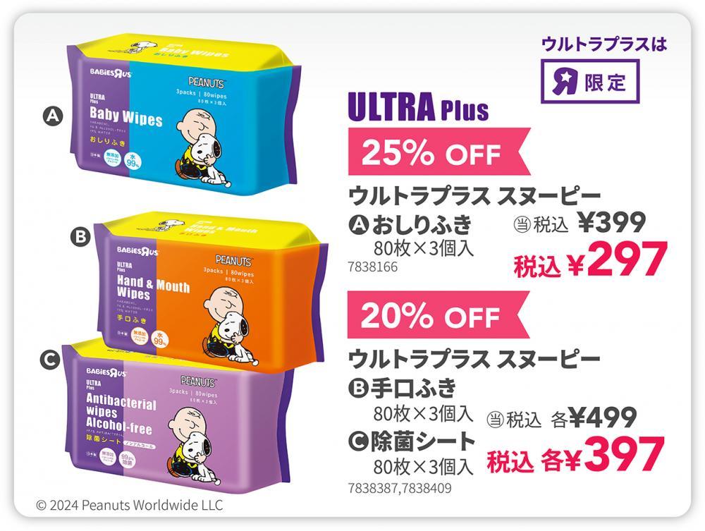 ・ウルトラプラス スヌーピーおしりふき・手口ふき・除菌シート