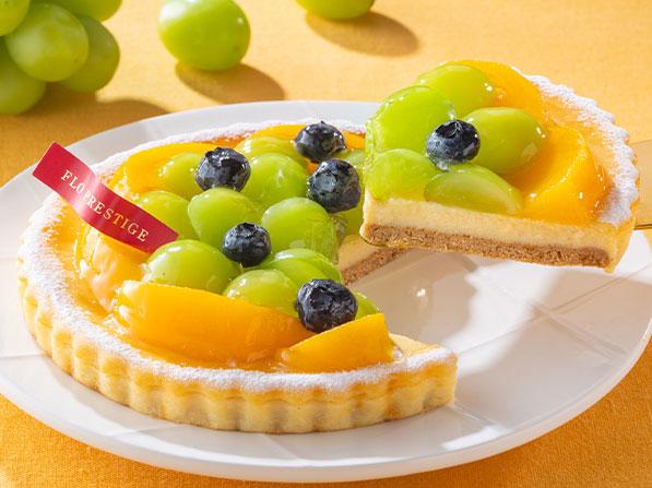 11月16日限定で登場するのは、まろやかな酸味が人気のチーズ台の「シャインマスカットと黄桃のタルト~チーズ~」。サイズは約15cmです。