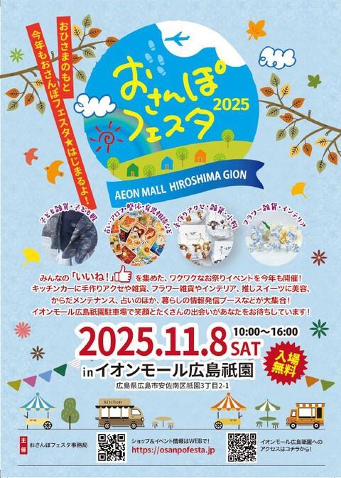 イオンモール広島祇園(広島市安佐南区祇園)は、2025年11月8日に「おさんぽフェスタ 2025」を開催します。