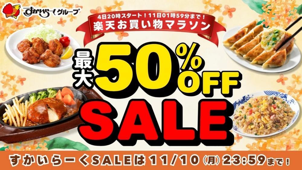 すかいらーくグループの楽天市場店で、2025年11月4日20時から10日23時59分まで、対象商品が"最大50%オフ"になるセールが開催されます。