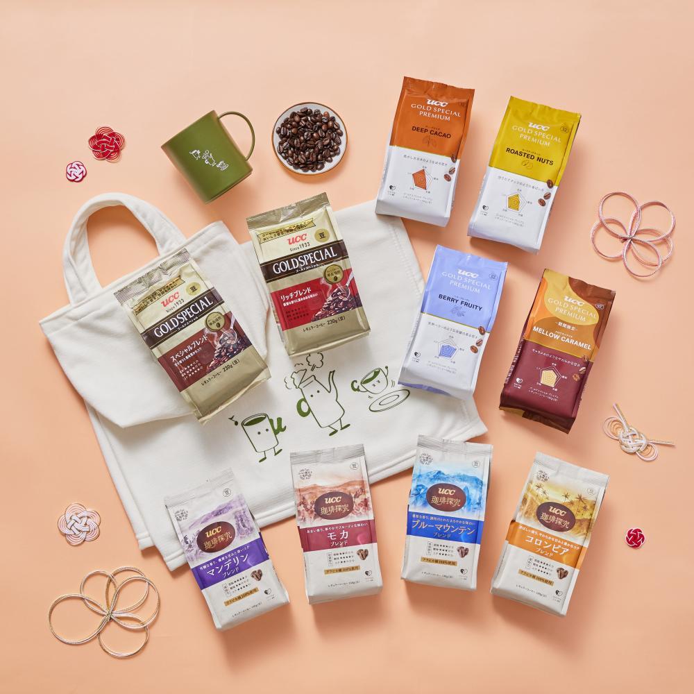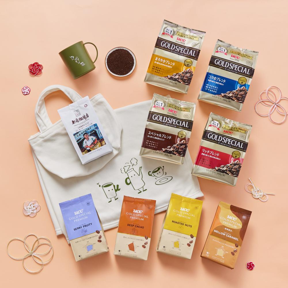 「UCC ゴールドスペシャル」各種や「UCC GOLD SPECIAL PREMIUM」「上島珈琲店 上島珈琲店ブレンド」9種入りの「粉セット」。