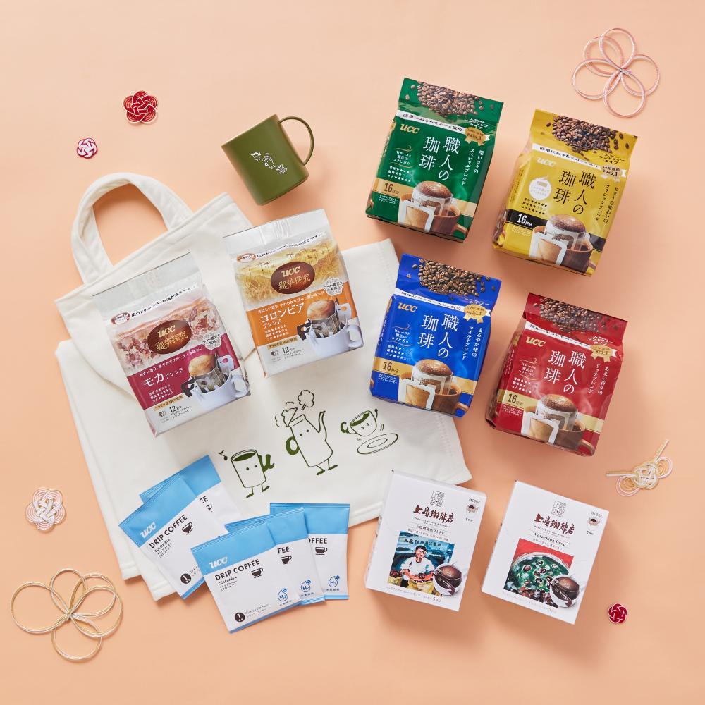 「UCC 珈琲探究」「UCC 職人の珈琲」「水素焙煎ワンドリップコーヒー コロンビア産」など9種が入った「ワンドリップコーヒーセット」。