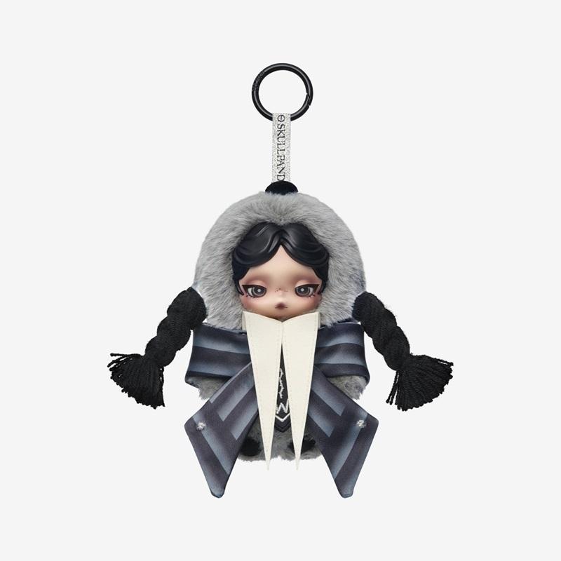 日本で販売されるコラボ商品の「SKULLPANDA x Wednesday ぬいぐるみ(ネヴァーモア学園制服バージョン)」は、主人公ウェンズデー・アダムスが通うネヴァーモア学園の制服をモチーフにした、シックなデザインになっています。ウェンズデーの印象的な三つ編みのおさげ髪も取り入れていて、両ファンも納得のクオリティに仕上がっています。