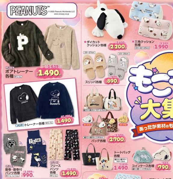 ハローキティやクロミを描いた「リラモコパンツ各種」(2189円)や「はんてん各種」(3520円)、くまのプーさんやミッキーシェイプを一面に描いた「腹巻付パンツ各種」(1089円)や「フリースパンツ各種」(1639円)といった、冷え性さんにぴったりなウェアも。寒い冬のおうち時間も、楽しく快適に過ごせるはずです。