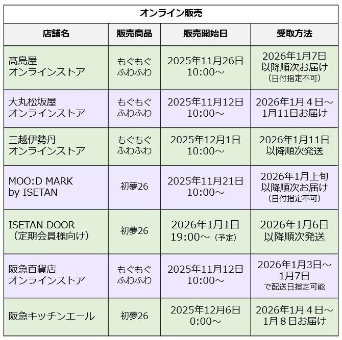 オンライン販売は11月12日から順次開始、店頭事前予約は12月8日から、店頭販売は26年1月1日に開始します。