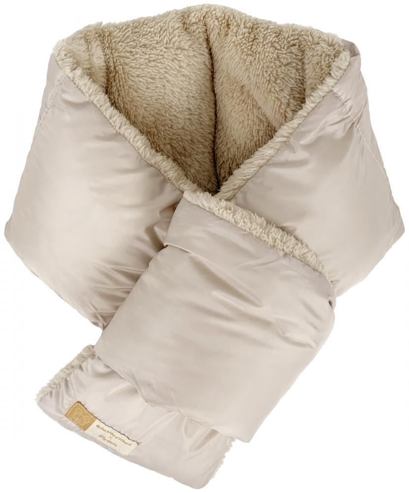 ふわふわのボア素材とキルティング生地を組み合わせ、軽量であたたかい、冬にぴったりのアイテム。ナチュラルカラーを採用し、福袋限定の「くまのがっこう」のかわいらしいコラボレーションタグを備えています。