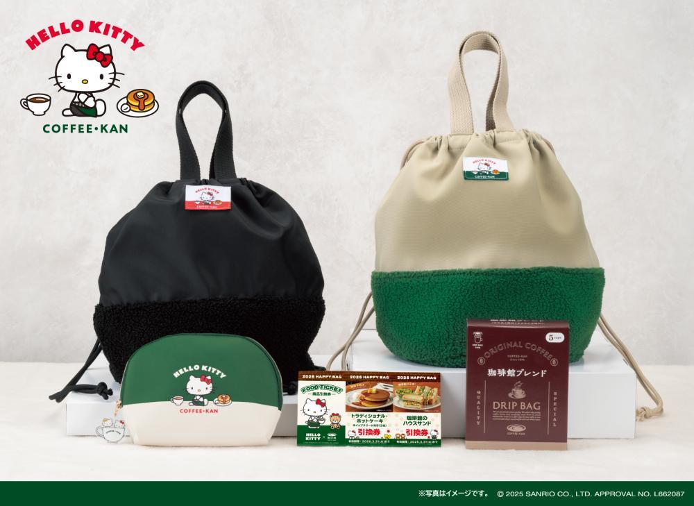 【珈琲館】福袋でハローキティと初コラボ♡4つのアイテムが入った「ハッピーバッグ2026」は予約受付中。