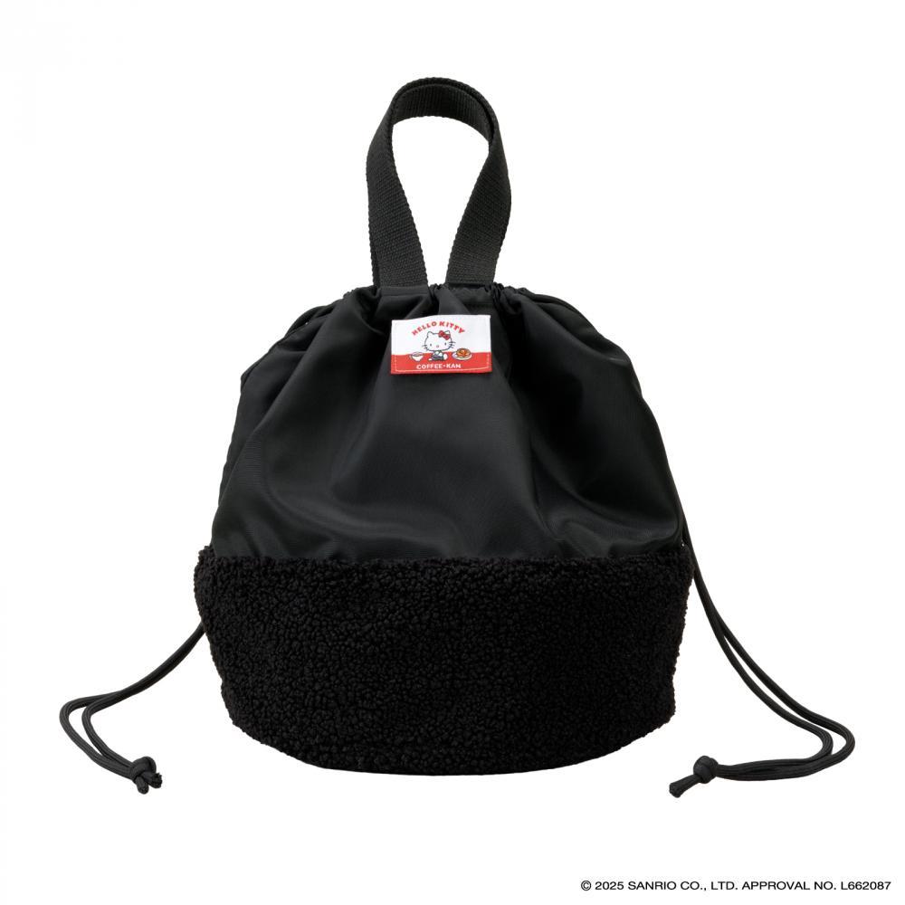 2種類の異なる素材を組み合わせた「ボア巾着バッグ」、珈琲館のメニューがハローキティの世界観にあわせて描かれた「オリジナルポーチ」、人気商品との引換券2枚と「珈琲館ブレンド ドリップバッグ1箱」がセットになった数量限定の特別な詰め合わせです。