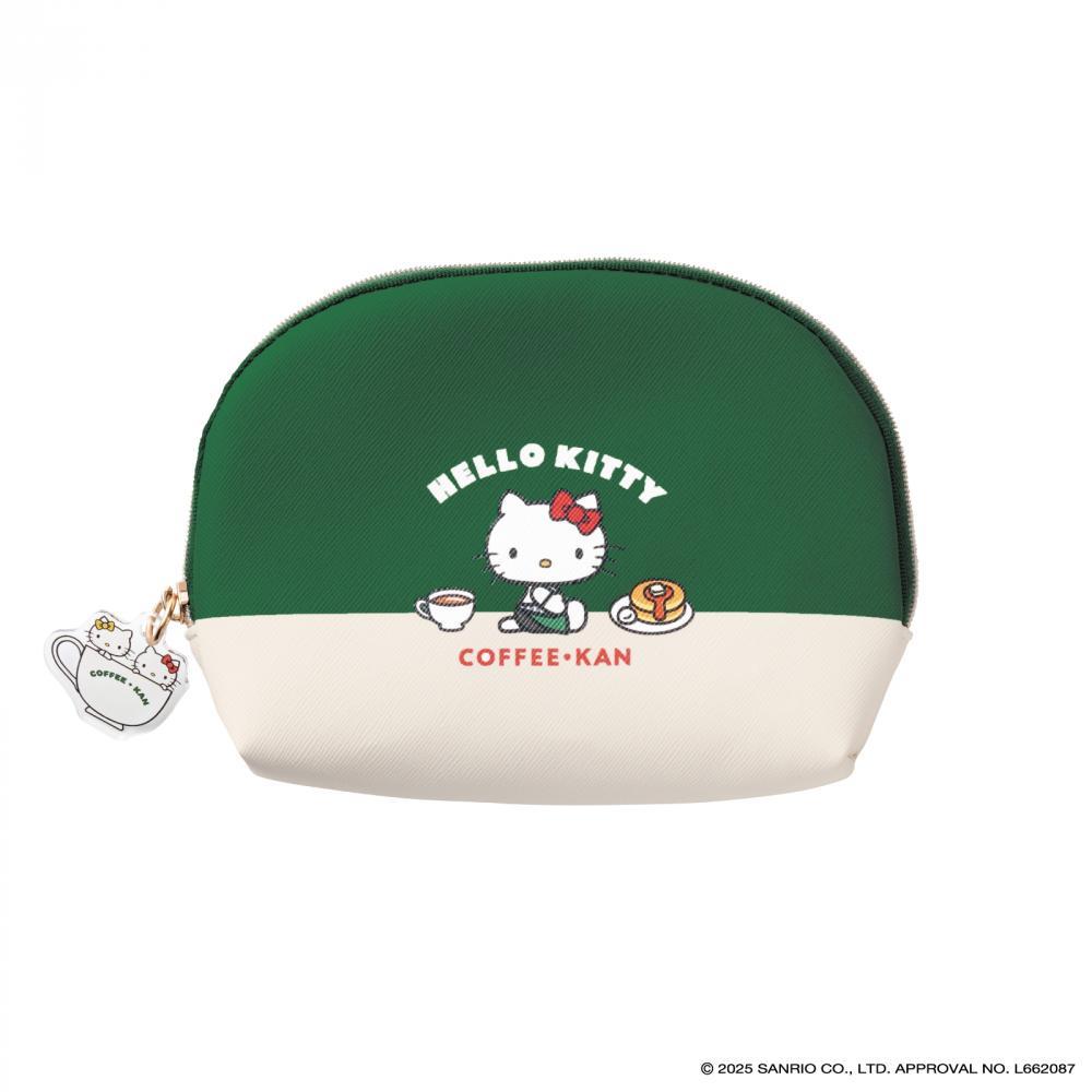 珈琲館の落ち着いた喫茶店のぬくもり感と、ハローキティの可愛らしさをデザインに詰め込んだオリジナルポーチです。使いやすさにもこだわり、口が大きく開いて出し入れがしやすい形になっています。
