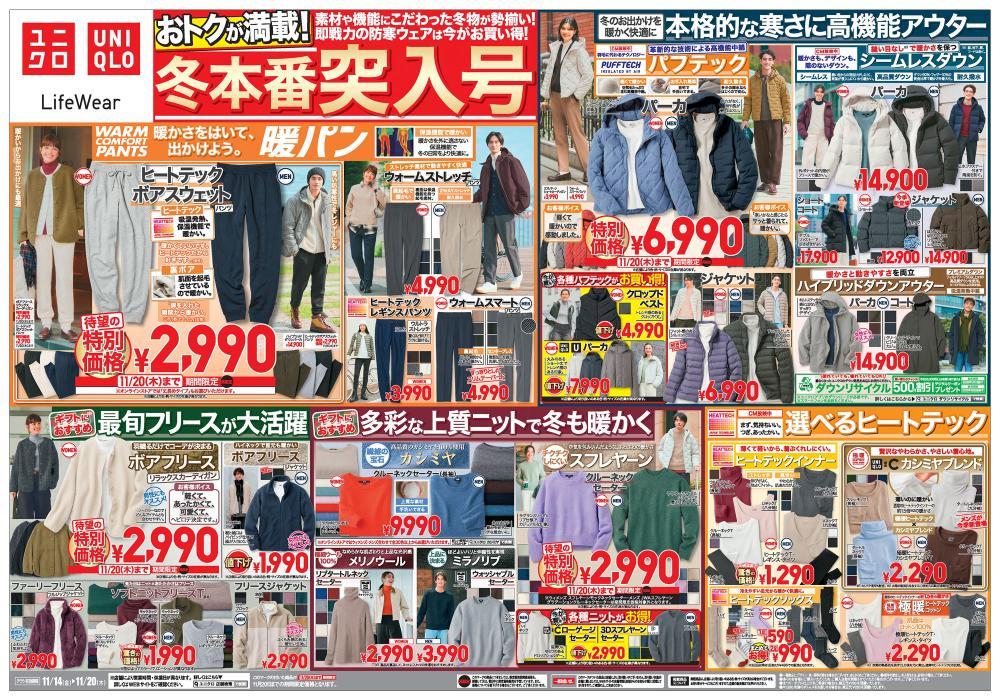 2025年11月14日から20日までの期間は、「冬本番突入号」。トップス、ボトムス、アウターまで、素材や機能にこだわった防寒ウェアがお得になっています。