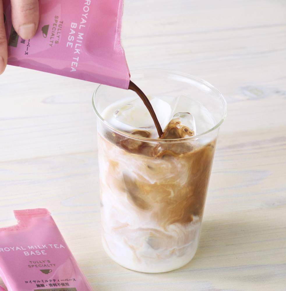 牛乳を注ぐだけで本格的な1杯に。画像はロイヤルミルクティーベースです。